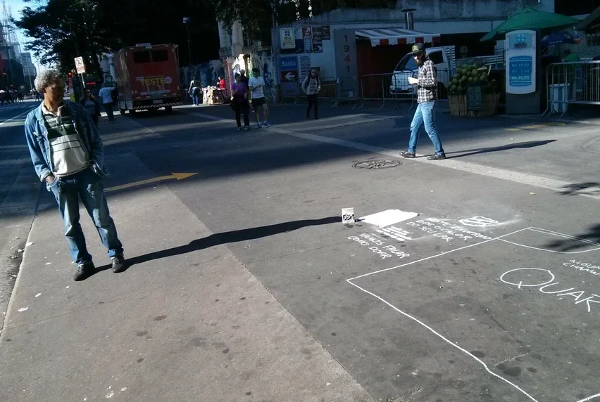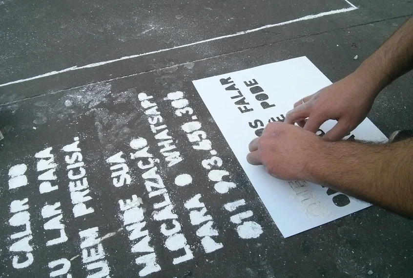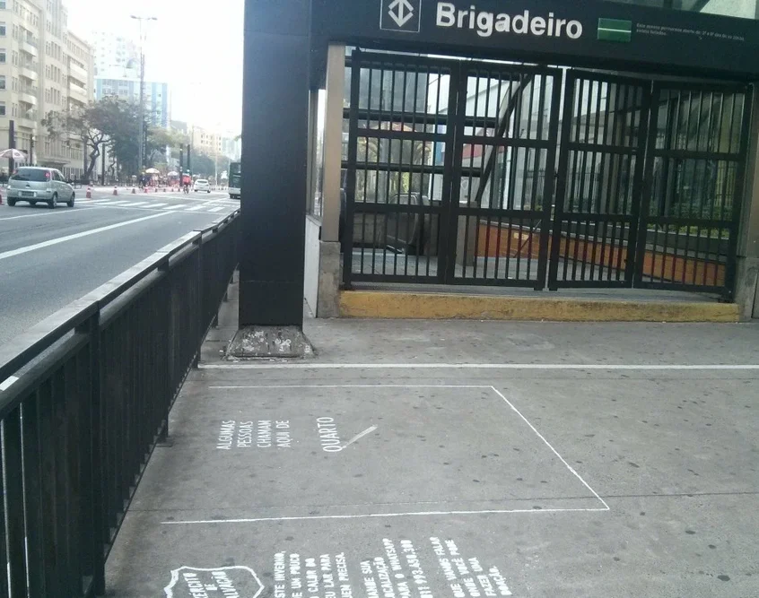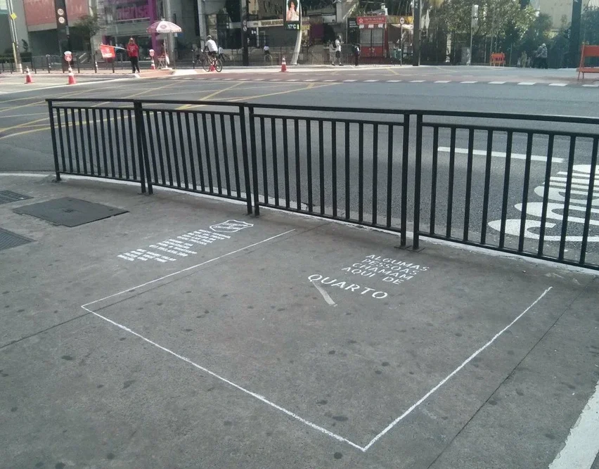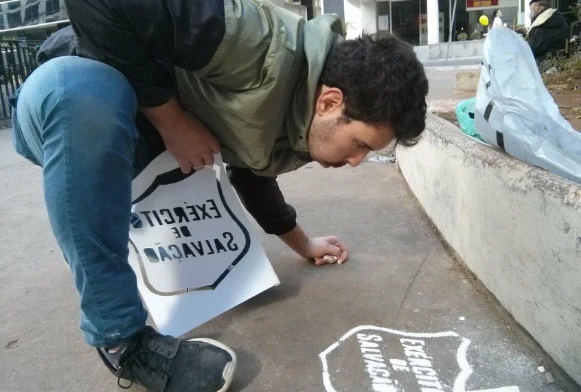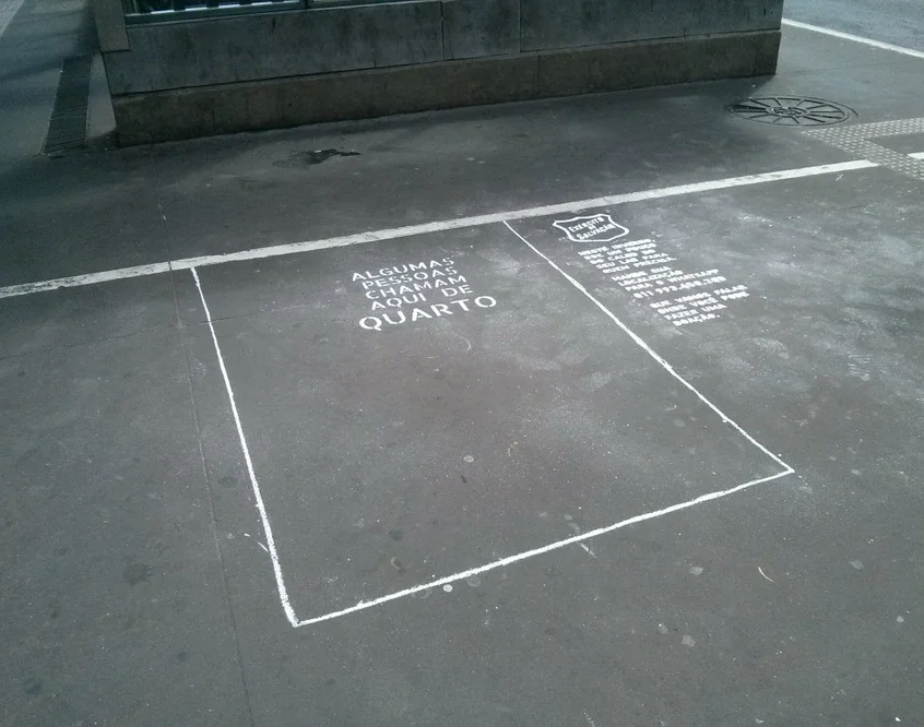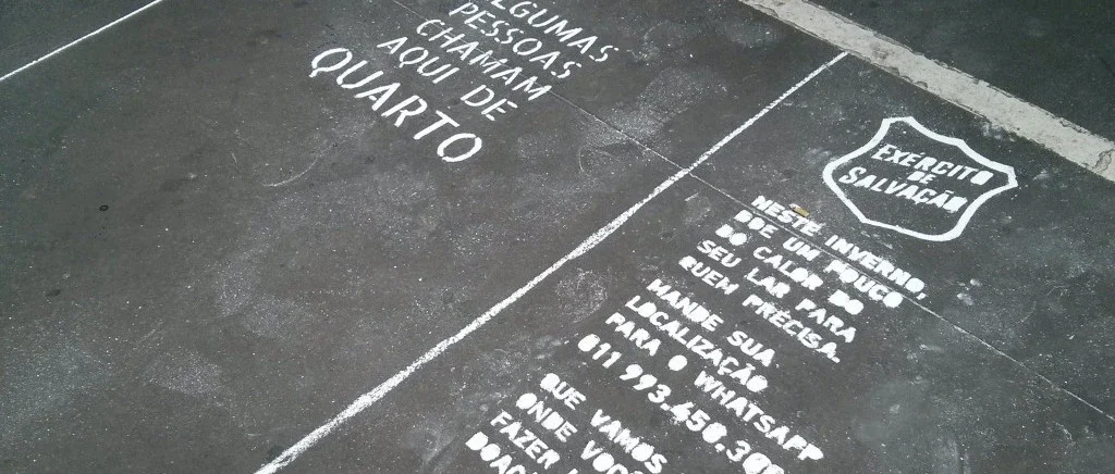 Durante o inverno, desenhamos plantas baixas de quartos e cômodos nas ruas, convidando as pessoas à doarem agasalhos e roupas para o Exército de Salvação.