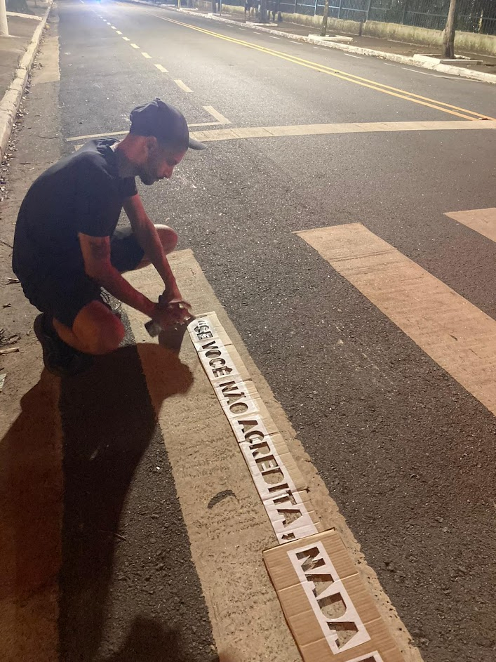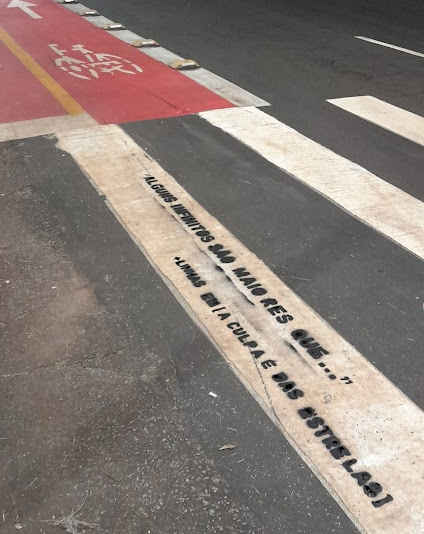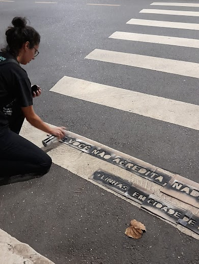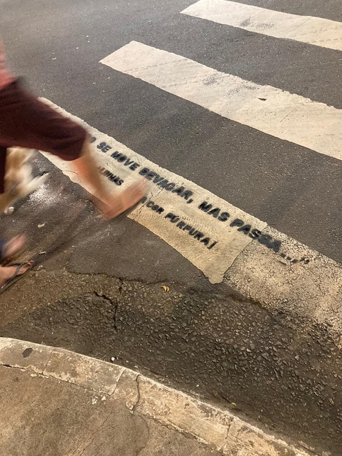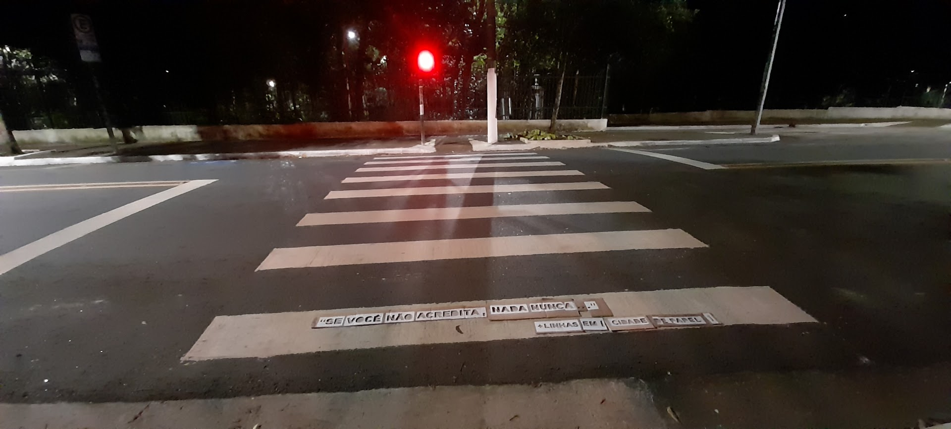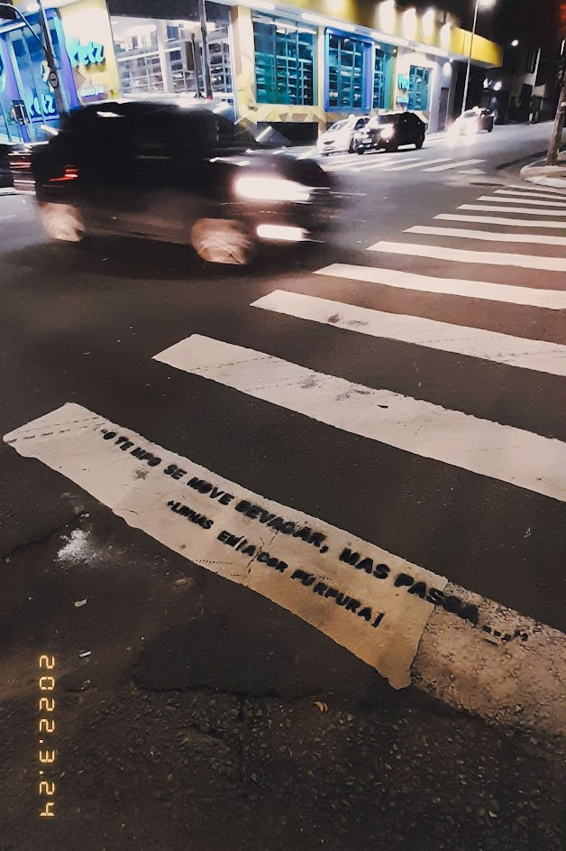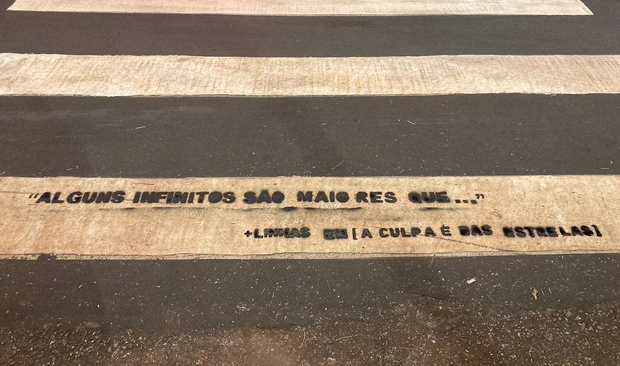 Transformamos a primeira linha da faixa de pedestres em uma das linhas de livros famosos. Mostrando que, em cada momento de pausa da vida, é possível incluir linhas de leitura no dia a dia