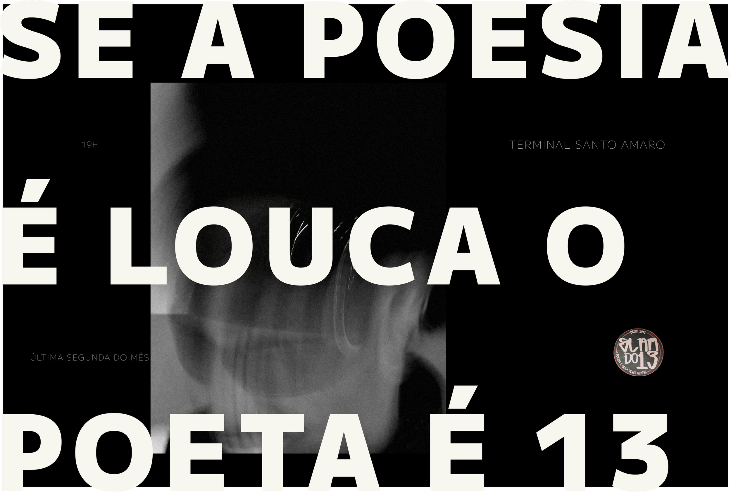 O Slam do 13 é um coletivo periférico que realiza batalhas de poesia no extremo sul de SP. “Se a poesia é louca, o poeta é 13” é a frase de abertura para que o poeta declame seus textos.