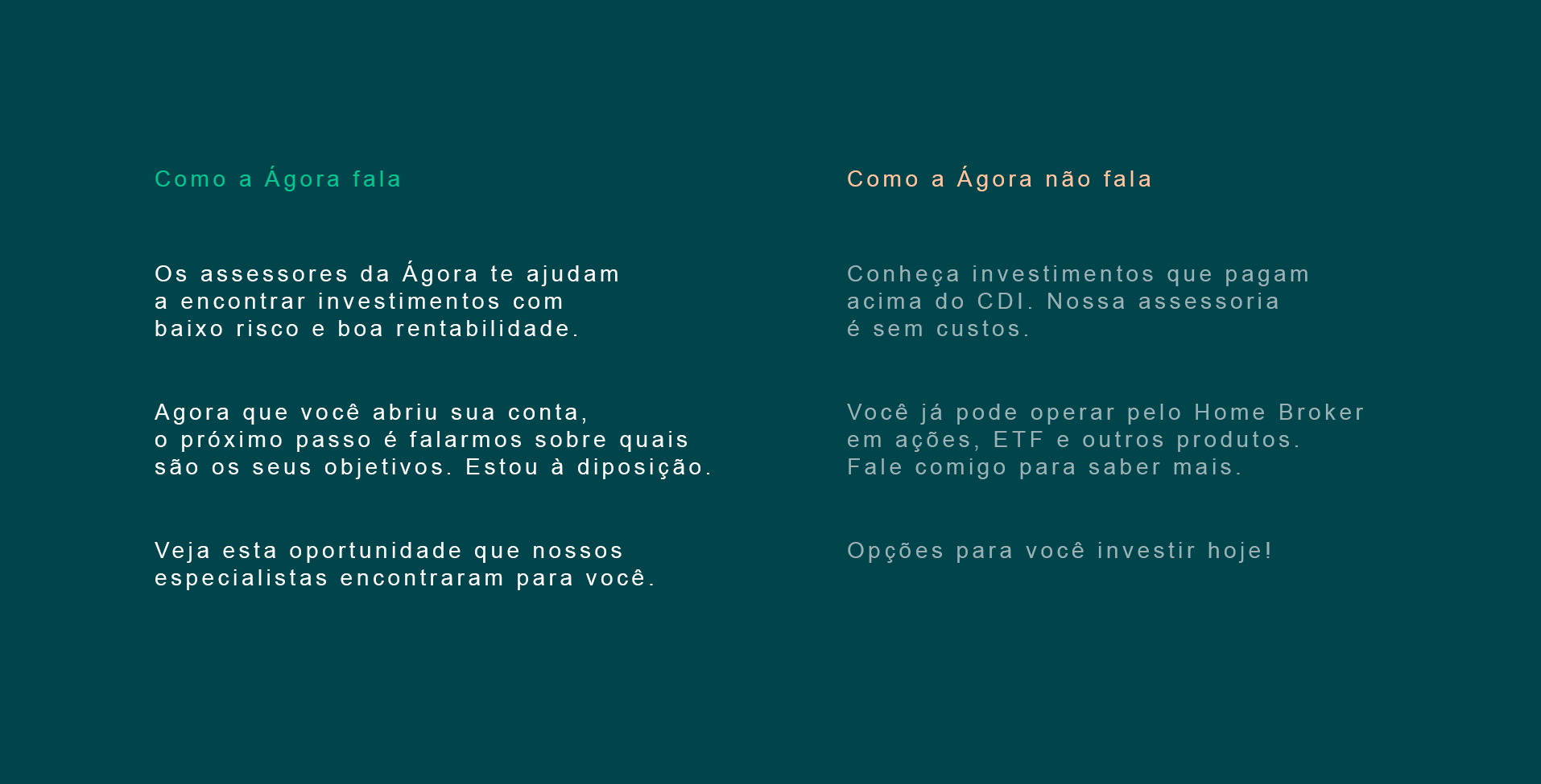 Depois de ter sido uma corretora de investimentos inovadora na década de ‘90, a Ágora tinha a necessidade de se renovar no mercado com um grande rebranding.